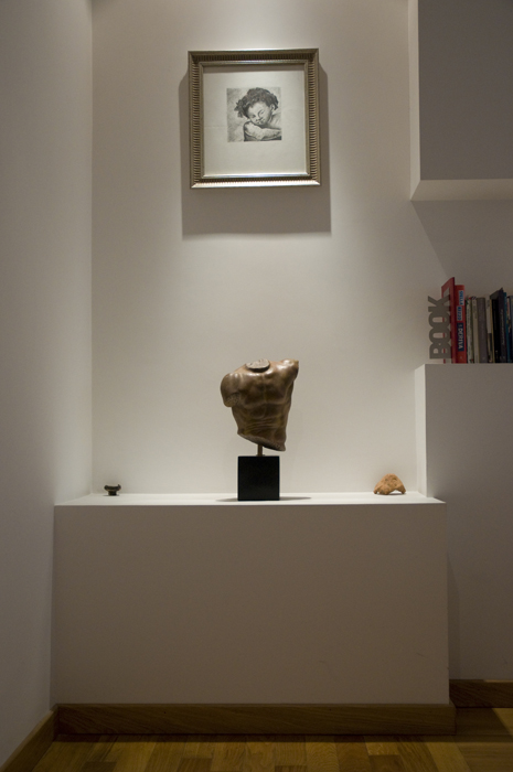 La cucina accompagna questa rotazione ricevendo luce quindi su entrambi i fronti, come un cannocchiale che si insinua nel soggiorno. Questa rotazione fa saltare anche un angolo del corridoio, e avvia così la direzione alla zona notte, dove sono state ricavate due grandi stanze da letto, due bagni, e una cabina armadio/ripostiglio. In tutto l’intervento è cercato di dare profondità alle pareti dell’appartamento, soprattutto quelle confinanti con le altre unità immobiliari. Sono stati così creati degli spessori aggiuntivi dei muri di volta in volta utilizzati come libreria incassata nel muro, testata del letto, separazione tra cucina e salone, e come dilatazione della zona soggiorno. Il bianco dei muri è dominante, il disegno del parquet in rovere a grandi listoni segue il disegno dei controsoffitti. Grande attenzione è stata posta anche agli impianti: quello di condizionamento canalizzato si percepisce appena, e la griglia di areazione dell' unità interna, è diventata anch’essa motivo architettonico.
